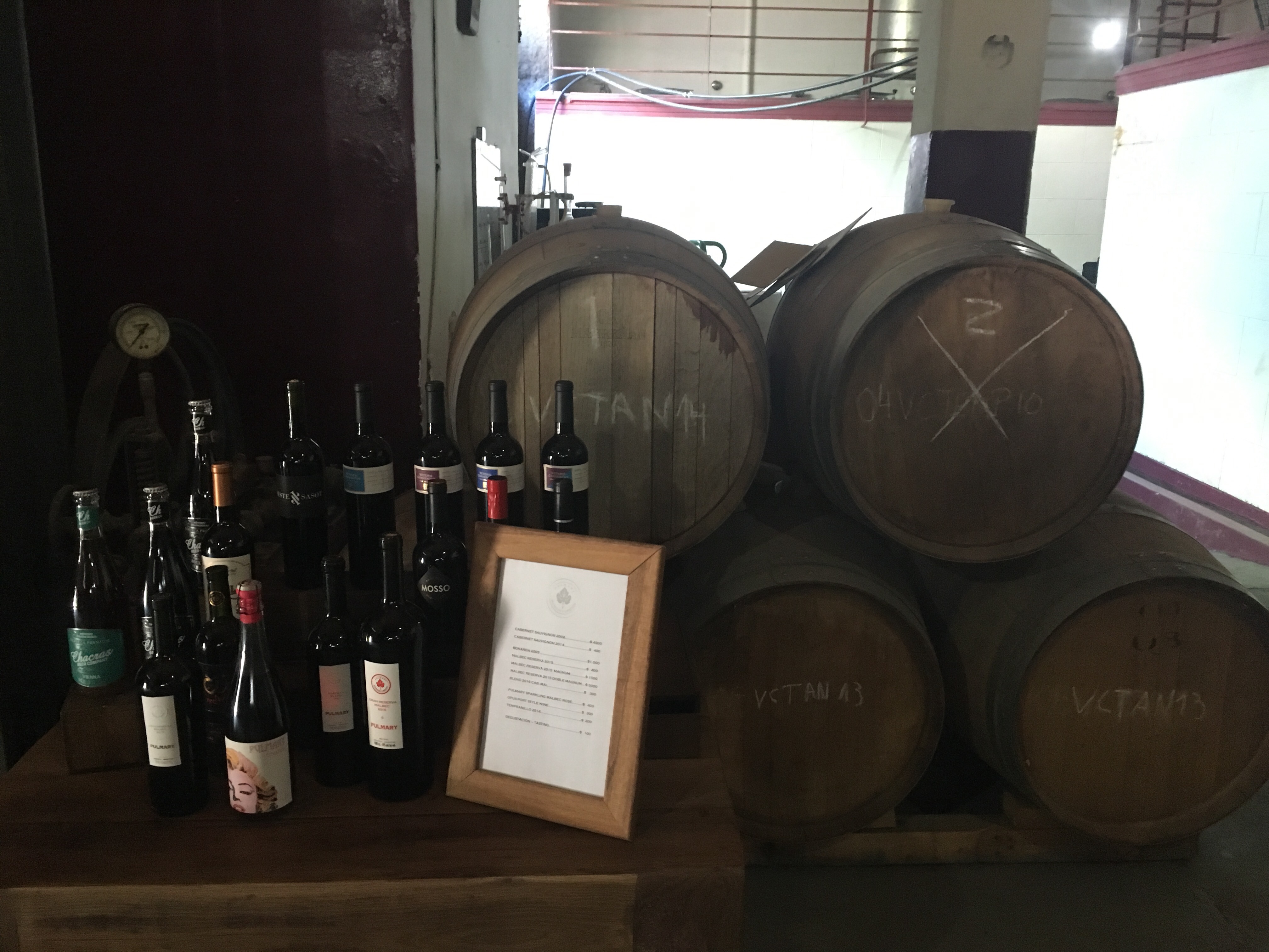 She brought us into the basement cellar full of dusty oak barrels and taught us about her process of making wine. The cement room held a constant refrigerator temperature naturally, making it perfect for storing wine. She led us through a dank cement hallway lined with barrels and into a small room with chalk graffiti all over the walls.