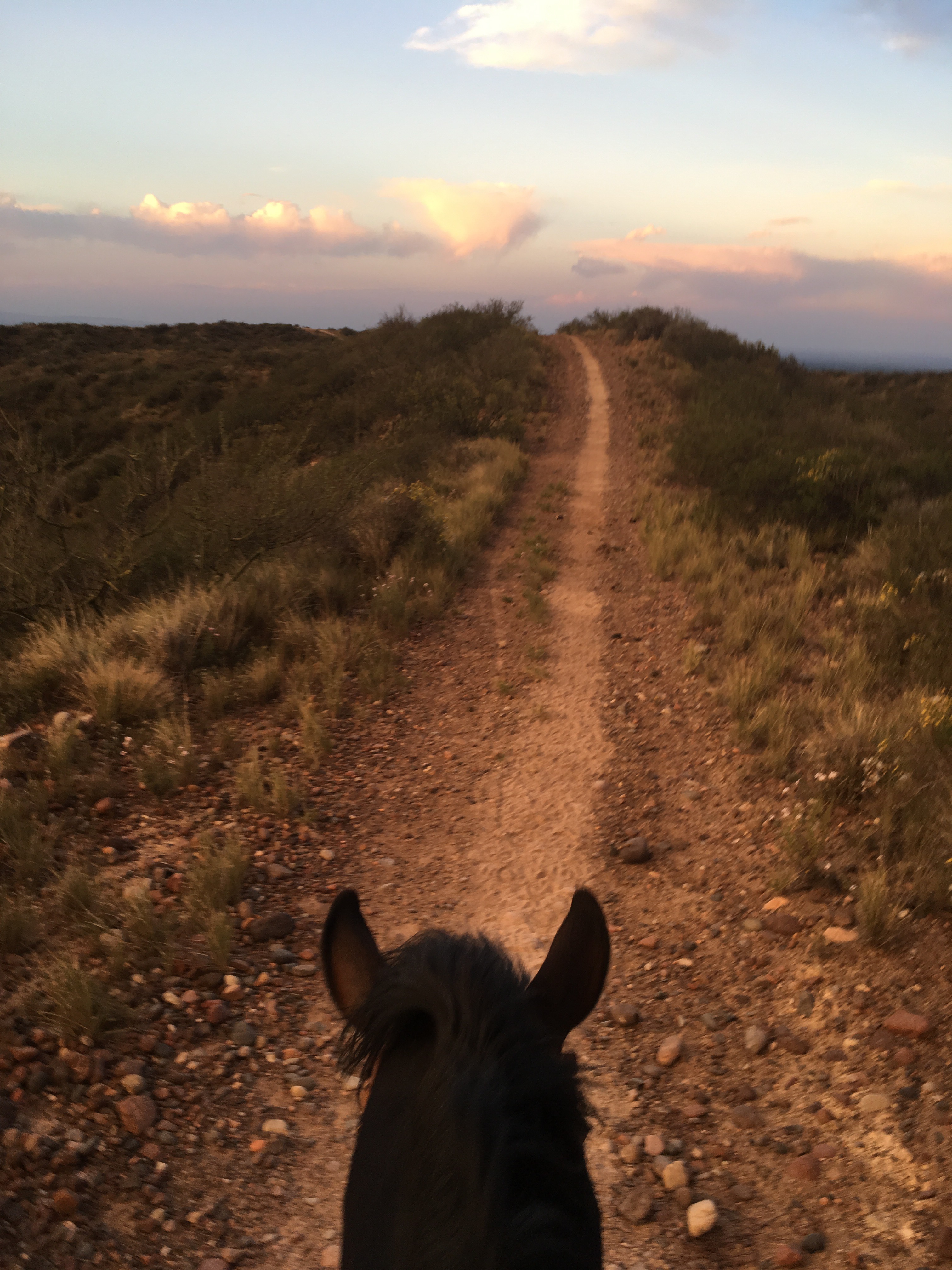 There are spectacular views of all the vineyards and the backdrop of mountains in the distance. The hills are covered in cactus that had white flowers blooming during spring and lemon yellow bushes lighting up the hills. The horses know the well worn path and require very little directing. You can just sit back and enjoy the ride, while the sun shimmies behind the mountains leaving the clouds illuminated in red and orange. In every direction the sky glowed. Behind us the hills stood out green against the soft blue and purple hues painted across the sky. The crescent moon shone bright and guided us back to the vineyard as the sky darkened.