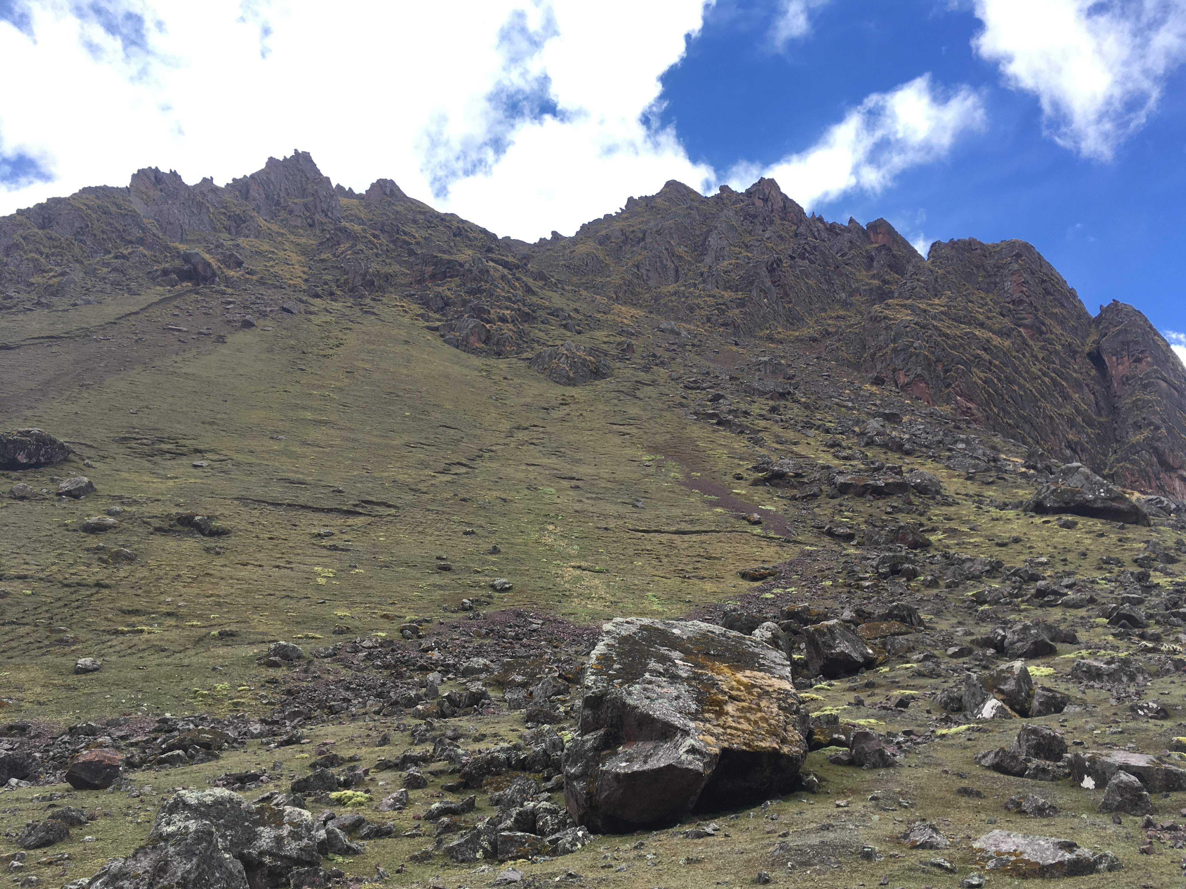 Our guide, Julian, a spunky Peruvian who kept referring to us as “mis amigos or my friends,” told us our team was named the Pumas. He said he expected us to make it to the top in 2 hours and then we would have a half hour for pictures before descending into Red Valley. He handed out heavy wooden walking sticks painted half orange and half yellow. Then we headed for the start.