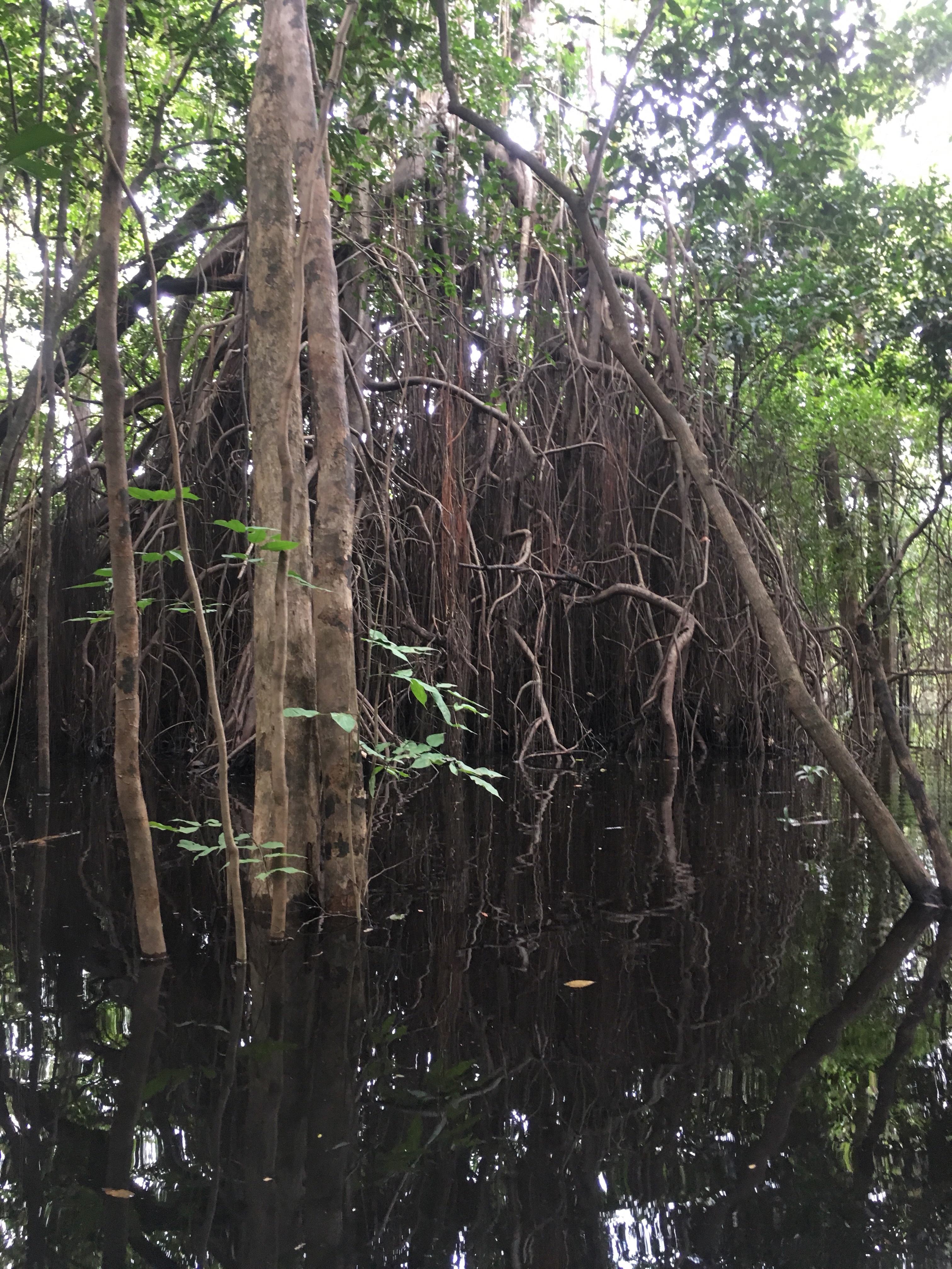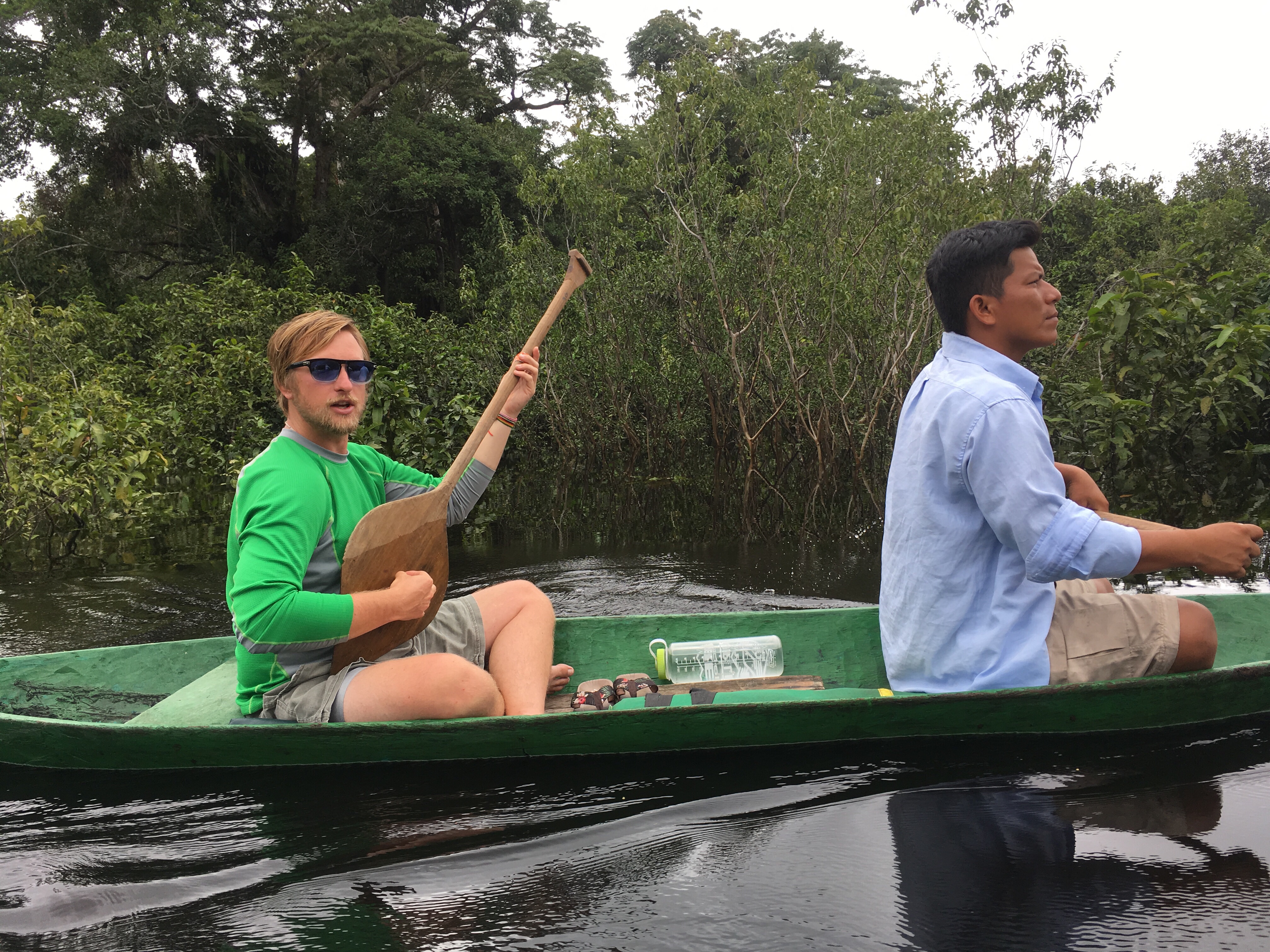 We were feeling cocky by day four after spotting so many animals that our luck caught up with us and we didn’t see much for two full days. We did enjoy a nice relaxing canoe ride through the flooded forests. The enormous walking trees spread their many trunks and roots across the shallow waters. We ducked under low branches and weaved between trees. We reached a lake with caimans, but didn’t see any. The day felt peaceful though and we got a workout trying to paddle back.