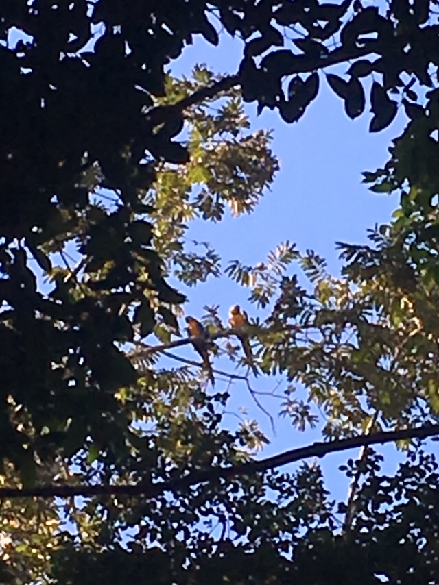 At the lake, which was covered in wild cabbage making it all neon green, we heard caimans scurry into the waters as we approached and peak their eyes out to peer at us. Blue and yellow macaws held conference in a tree across the water, sitting in pairs. Large white herons swooped over the waters. The trees were all a chatter with different species of birds hiding from the cayman. We sat on a fallen trunk and ate our breakfast with the mosquitoes.
