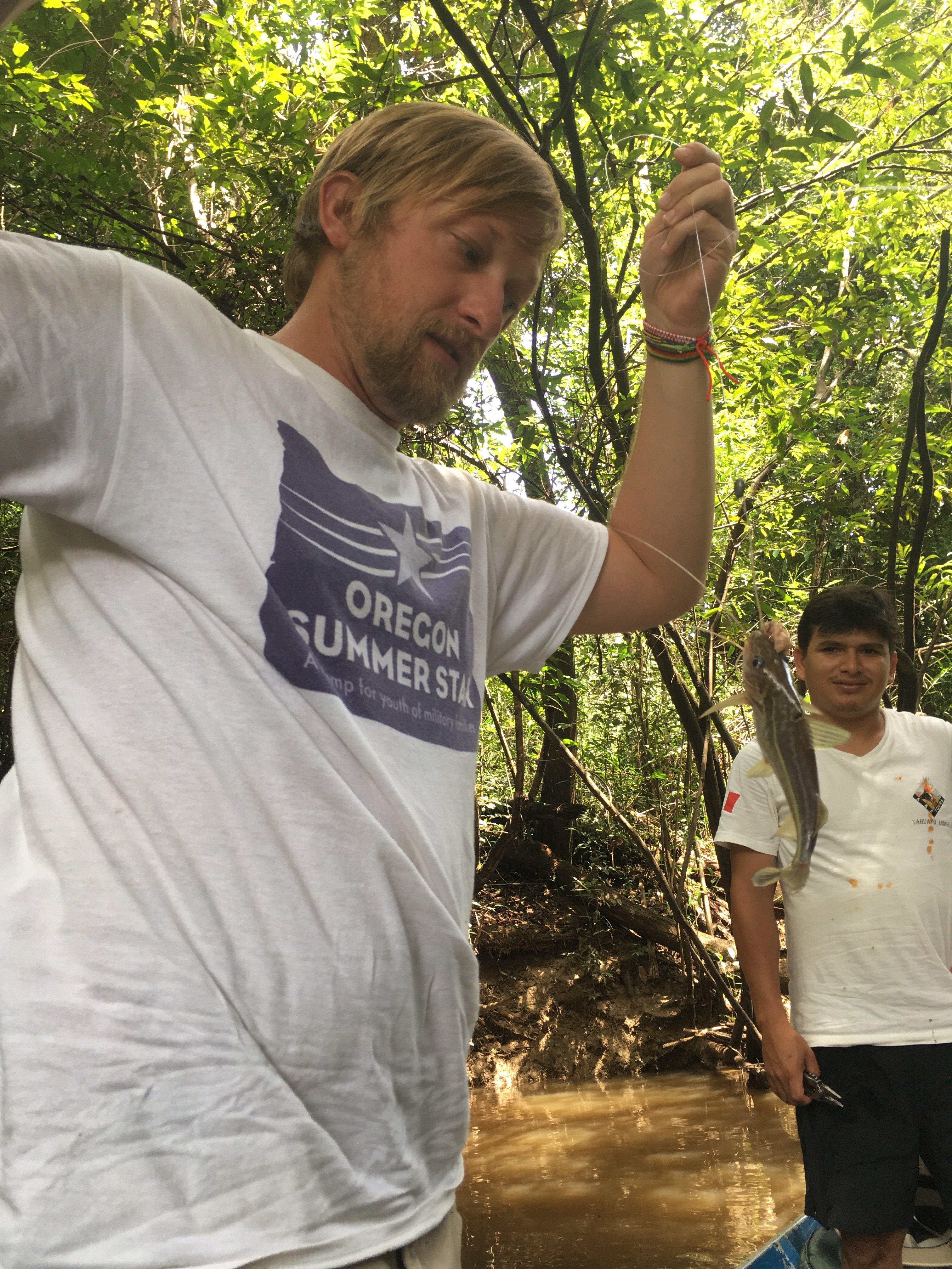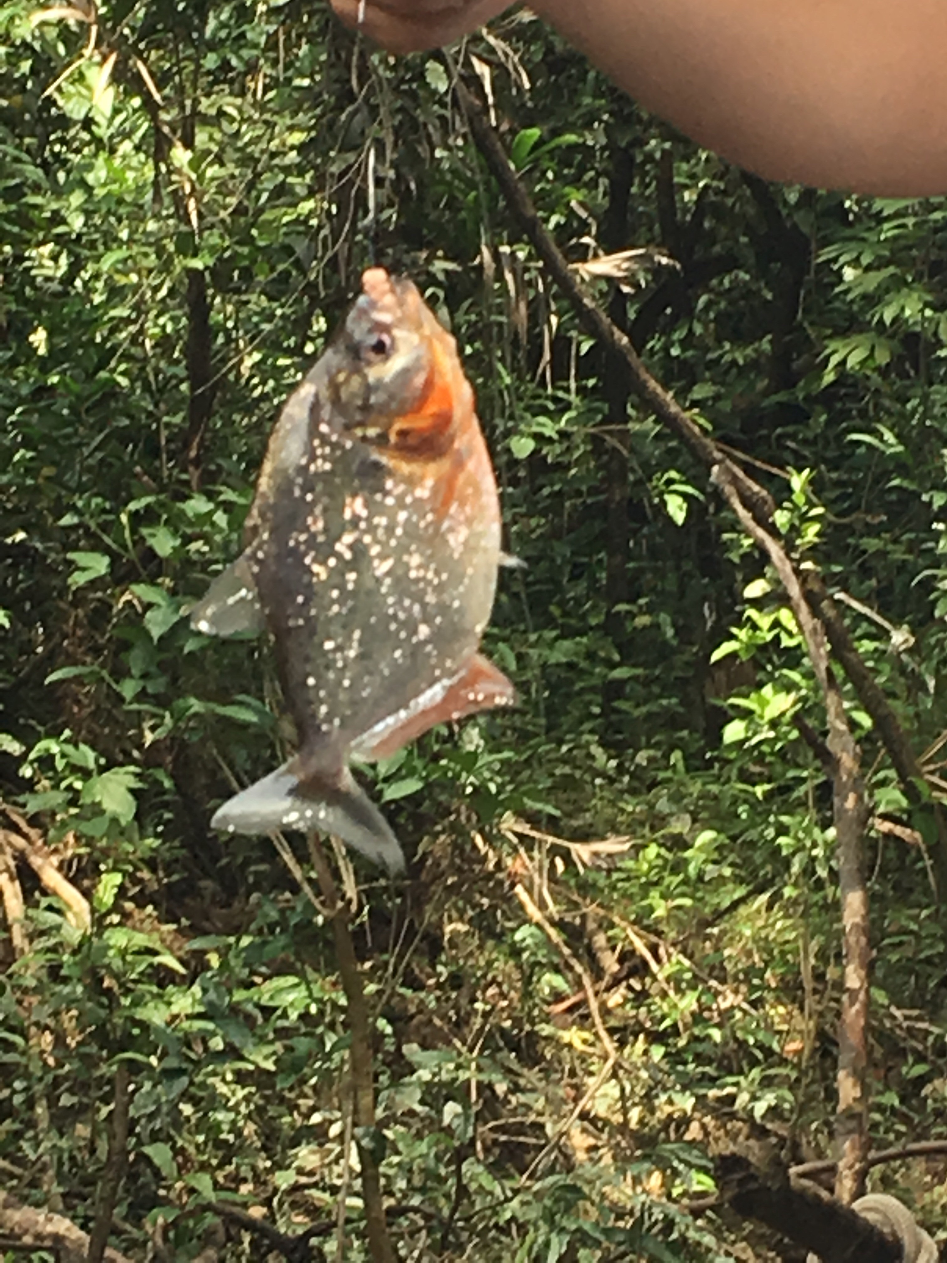 On our last adventure day, we sat on the still waters and spent our morning fishing. Ethan caught two catfish and I caught a piranha and a smaller fish. By pure luck we finally spotted those elusive river otters bobbing above the water.