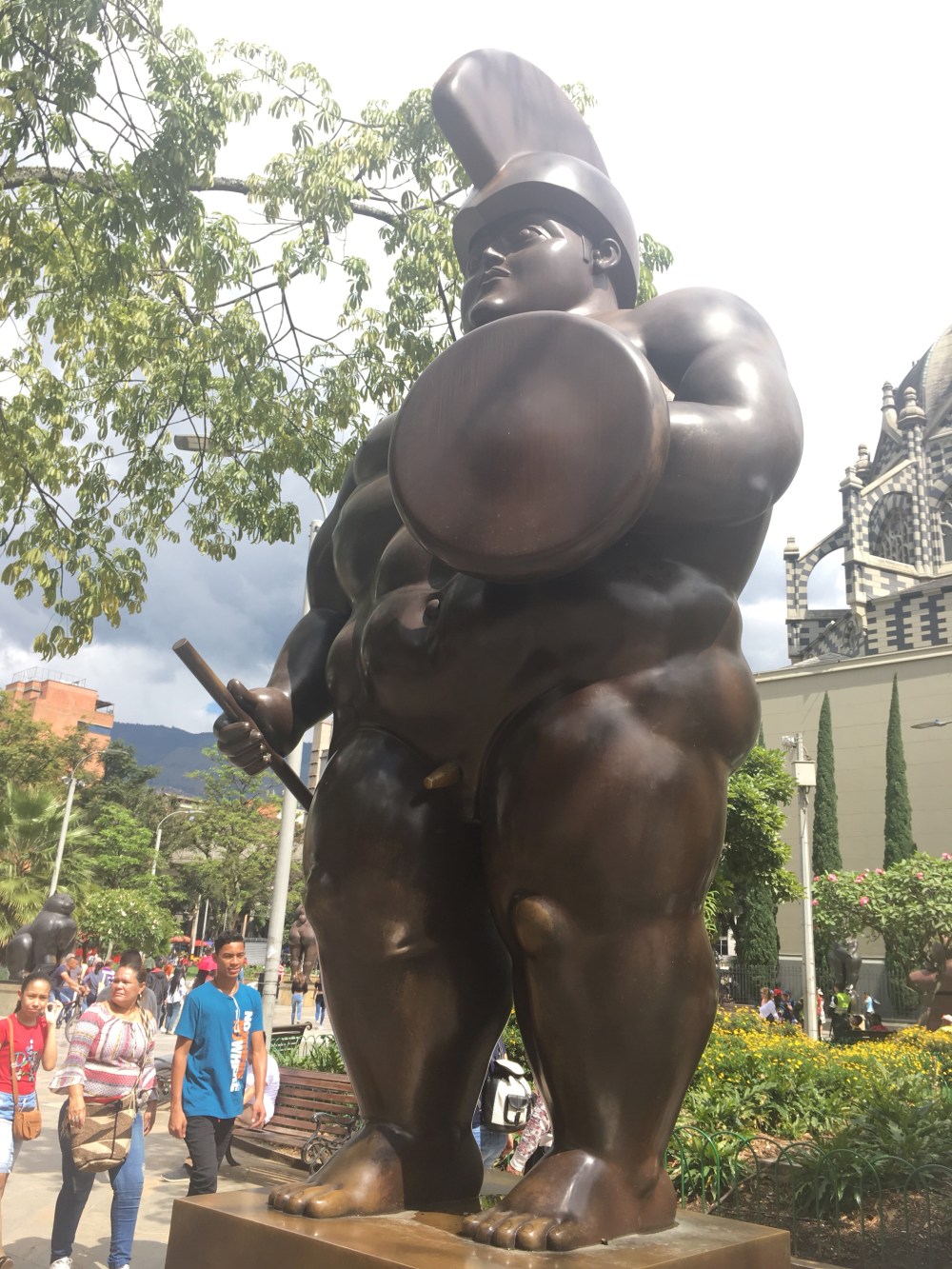 This Plaza, in the Centro Histórico of Medellin, features the famous sculptures of Colombian artist Fernando Botero Ángulo. He is known for the style of sculpting figures of large exaggerated women, men, and pets.