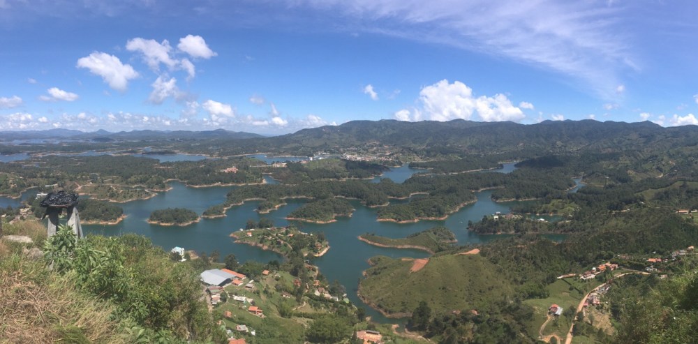 The rock formation that sits between Peñol and Guatapé has disputed ownership between the two towns hence the two names Rock of Peñol or Rock of Guatapé. It was first scaled in 1954 and now features sturdy cement steps, 675 to be exact. For only $6, you can climb these zig zagging steps to the top of the rock for a spectacular view at 650 feet high. Your view is of the network of lakes weaving between mini green islands.