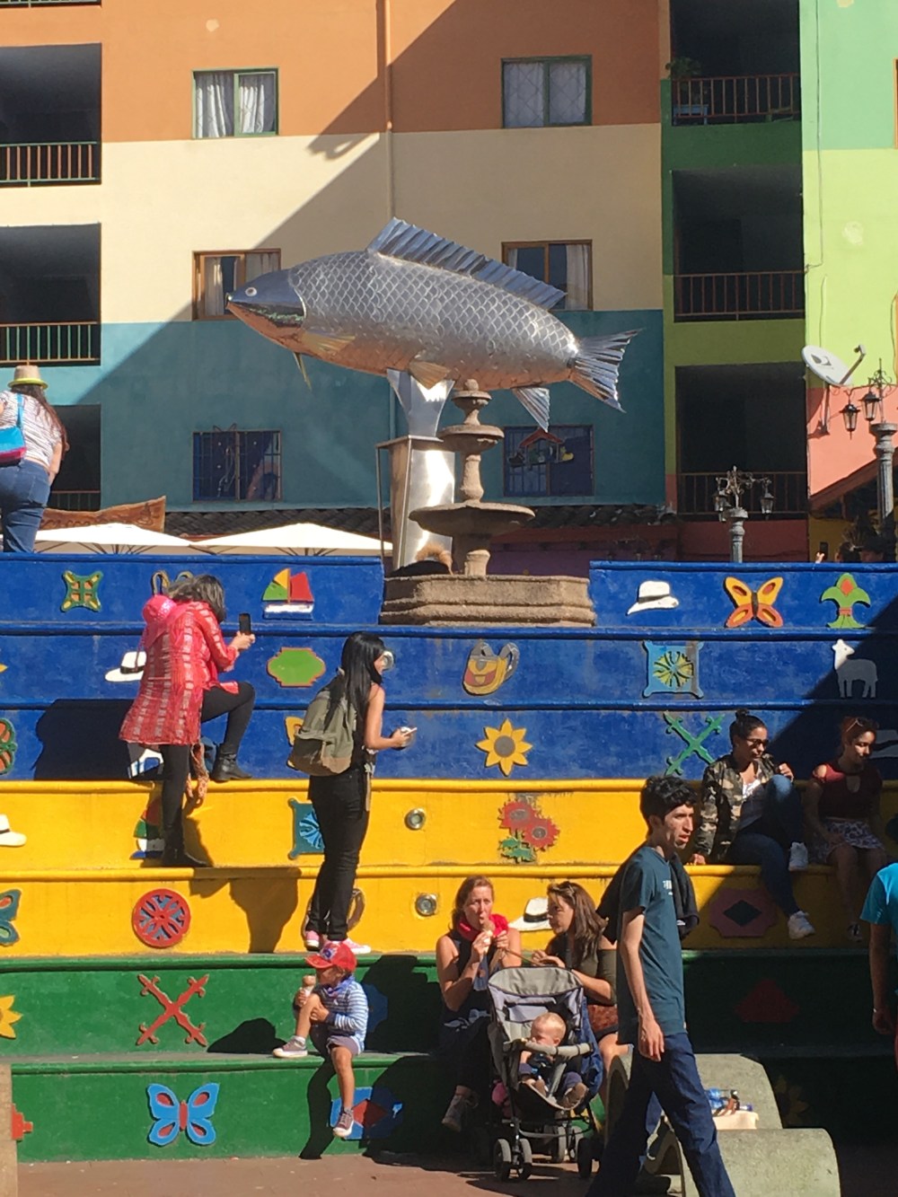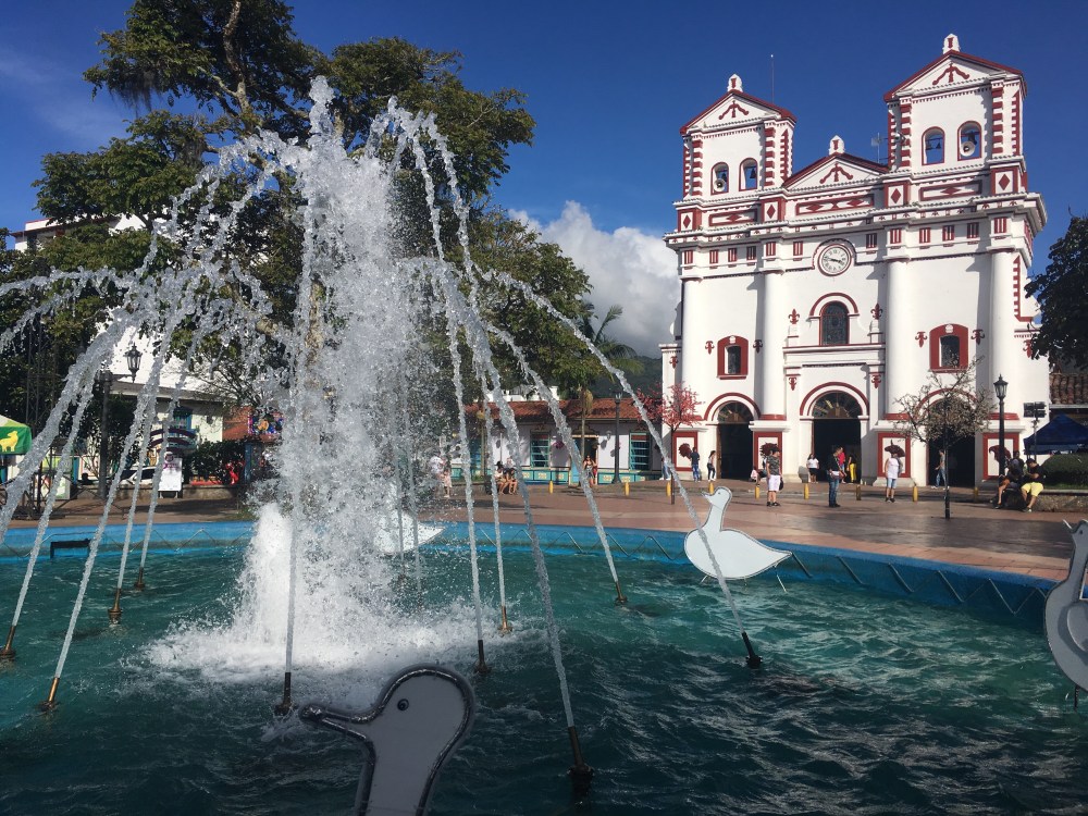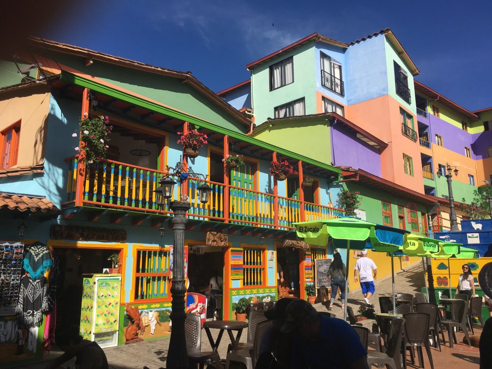 There’s a lovely square, where we sat on the bright painted steps to listen to jazz musicians and sip coffee. The main square features a fountain spurting water shows in front of the bright white and maroon trimmed cathedral. Enjoy the local Medellin dish of Bandeja- rice, beans, fried egg, plantain, and your choice of meat, at Kennedy Restaurant and Bar on the plaza to people watch.