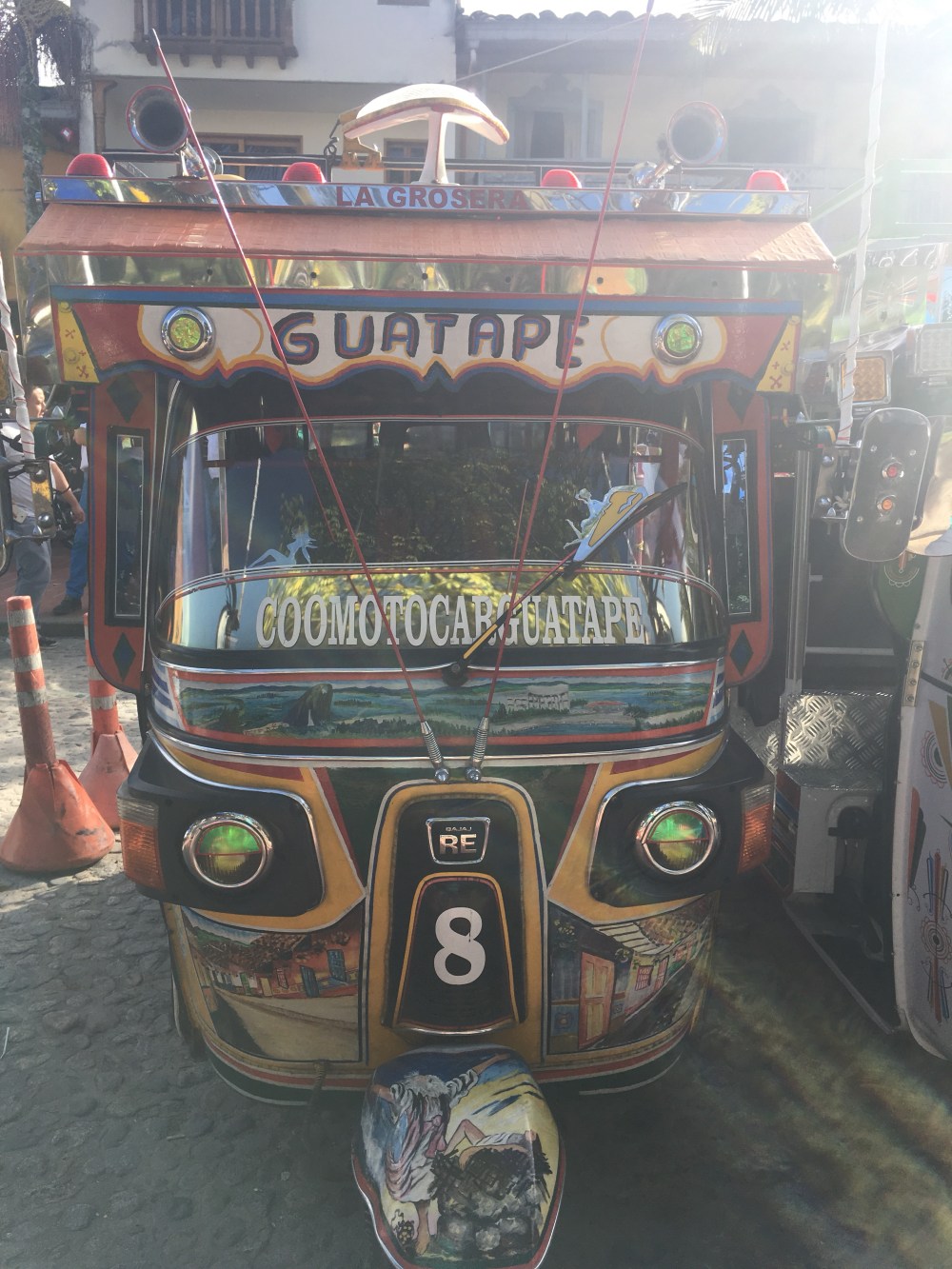 Even the tuk tuks are colorful with depictions of the rock and Guatapé. You can take one to the mirador of the lakes and the rock. You could spend a night here at one of the many hostels or fancy hotels on the lake, or just visit for the day like us.
