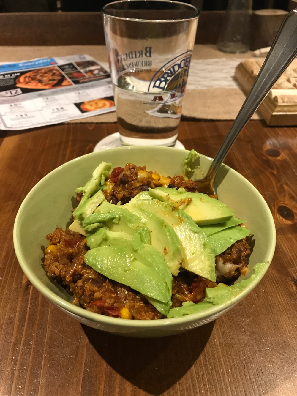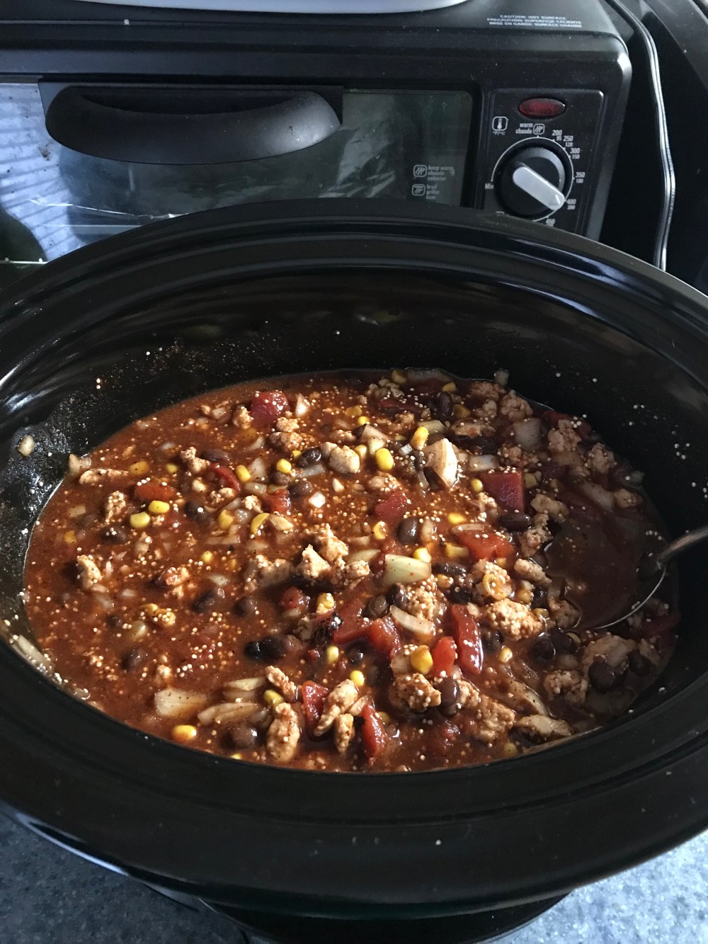 Today, I made Slow-cooker chicken enchilada quinoa. It was super easy and my husband and I loved it. You basically cook the ground chicken on the stove until there’s no pink, then add it to the slow cooker. Then add all the other ingredients to the slow cooker and either cook on high for 3 hours or slow for 6 hours. It comes out creamy from the quinoa and hearty. My husband added hot sauce, but I found the two tablespoons of chili powder to be enough spice. I did eliminate the jalapeños because I don’t like spicy foods and the green onions, since I hate onions. We added avocado on top and enjoyed every bite! Here is the recipe: