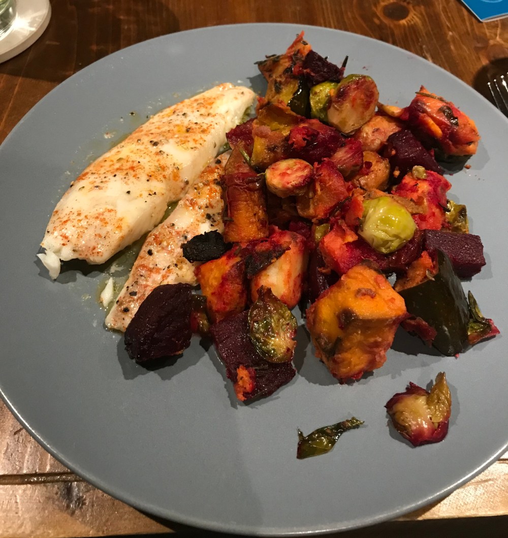 Lately, I’ve been roasting a lot of veggies and just serving them with fish or meat. It’s healthy and delicious! The other week, we had frozen tilapia and some leftover roasted veggies we brought to a party the night before. We wrapped the fish in tin foil and added some butter, olive oil, salt, pepper and paprika. We baked it with the leftover roasted sweet potatoes, beets, brussel sprouts, and potatoes for 20 minutes. It was perfect! Easy and healthy!